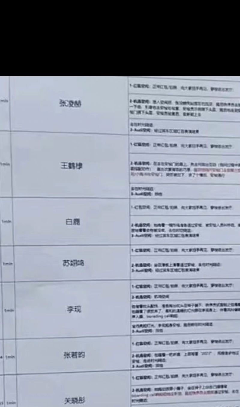 也來看看之前曝光的流程圖,當時出席藝人多達30多組,包括了:倪妮、何洛洛+張顔齊、胡春楊+傅菁、余承恩+田曦薇、陳哲遠、成毅、費啓鳴、關曉彤、何廣智、劉宇、劉雨昕、馬思純、倪虹潔、時代少年團、檀健次、童瑤、吳宣儀、易夢玲、張嘉倪、張淩赫、虞書欣、蘇翊鳴、王鶴棣、陳偉霆、李現、劉雯、張若昀、程耳+王一博 !