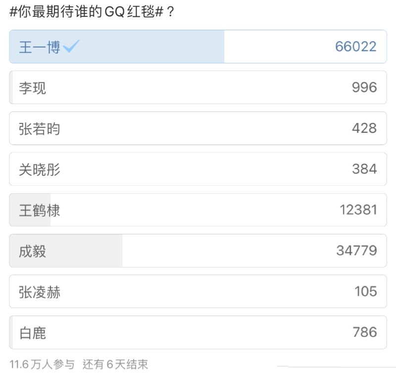 而在媒體舉辦的「你最期待誰的GQ紅毯」投票中,王一博一騎絕塵最受關注!