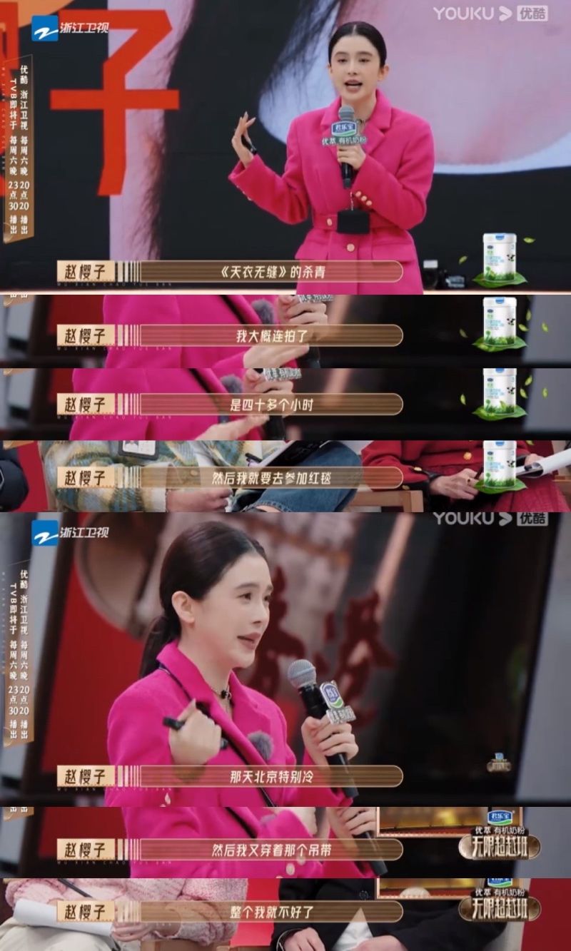 不過趙櫻子也實在很強,面對這麼直接的吐槽也不慌不忙,解釋自己當時拍攝電視劇《天衣無縫》殺青部分,大概連續拍攝了四十多個小時,就直接參加紅毯活動。加上當時北京特別冷,而她只穿了吊帶,所以一踏上紅毯就整個人狀態不好了。
