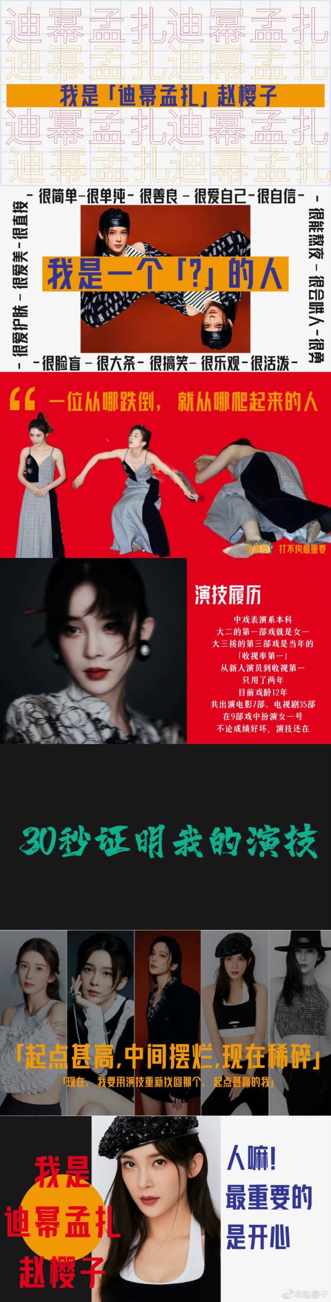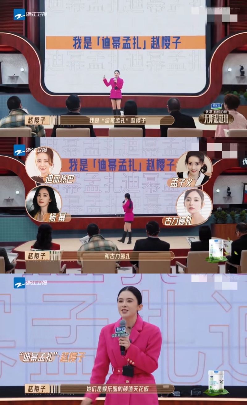 12月17日節目首播,絕對是趙櫻子殺瘋了的一期,因為…太多熱搜了!!!先來看看,為了讓老師們認識自己,學員們都準備了PPT,而趙櫻子一上來就介紹自己:「我是「迪冪孟扎」趙櫻子。」沒錯,就是「迪麗熱巴+楊冪+孟子義+古力娜扎」趙櫻子!根據本人解釋,這是網友給她的稱號,因為覺得她的樣子和上述4位相似👇