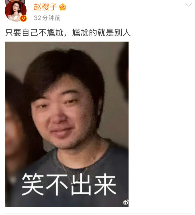 但,面對一晚上屠殺熱搜榜的戰績,趙櫻子發文回應:「只要自己不尷尬,尷尬的就是別人」嗚哇!!!!!!不得不說,這姐真的很瘋,也很直接坦率啊!