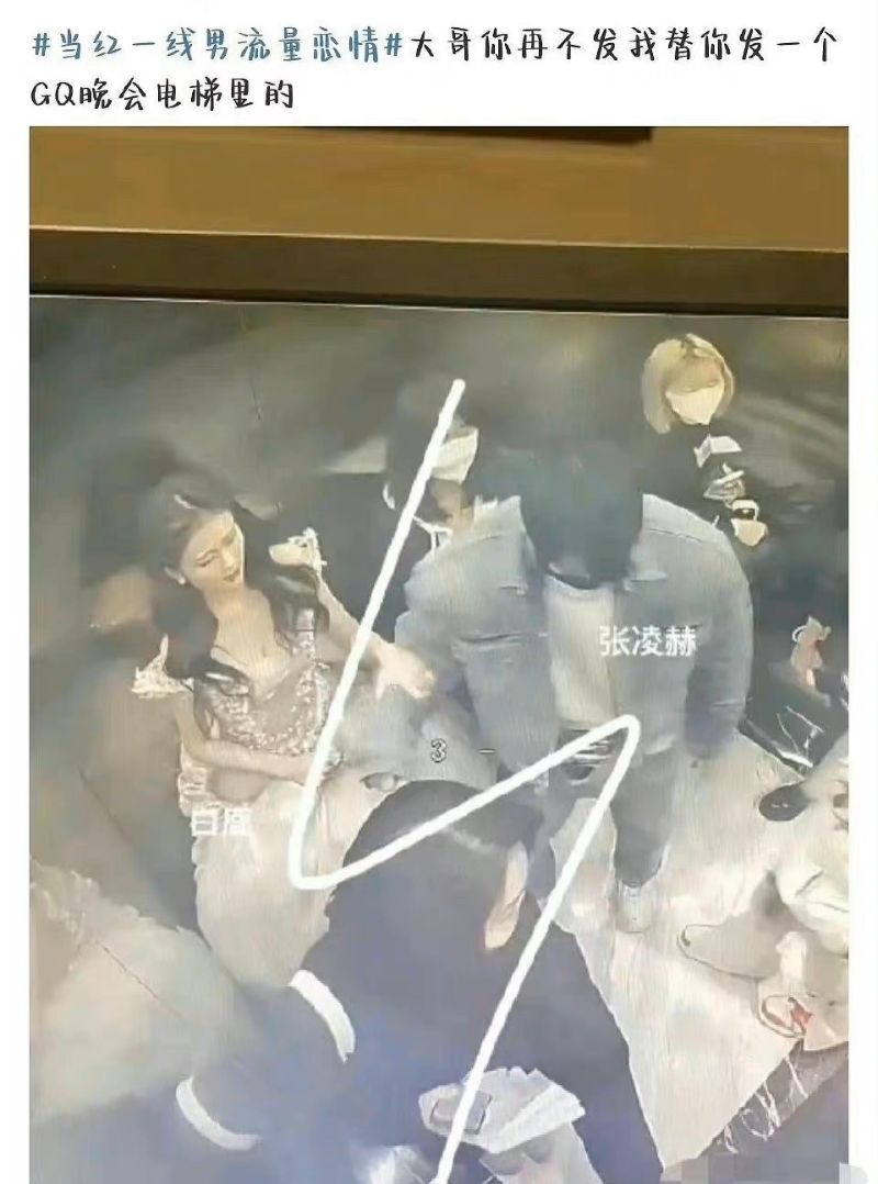 沒想到隨著戀情被爆,居然有網友順勢發帖爆料,公開了白鹿和“張凌赫”在GQ典禮電梯內牽手的照片👇