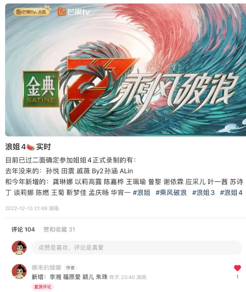 沒錯,浪姐4將採用全新真人秀模式,5天棚內+2天戶外,以“真實旅行生活”場景方式進行,將會和大眾聯合共創最美的聲音,還會探訪城市之星,講述動人故事..