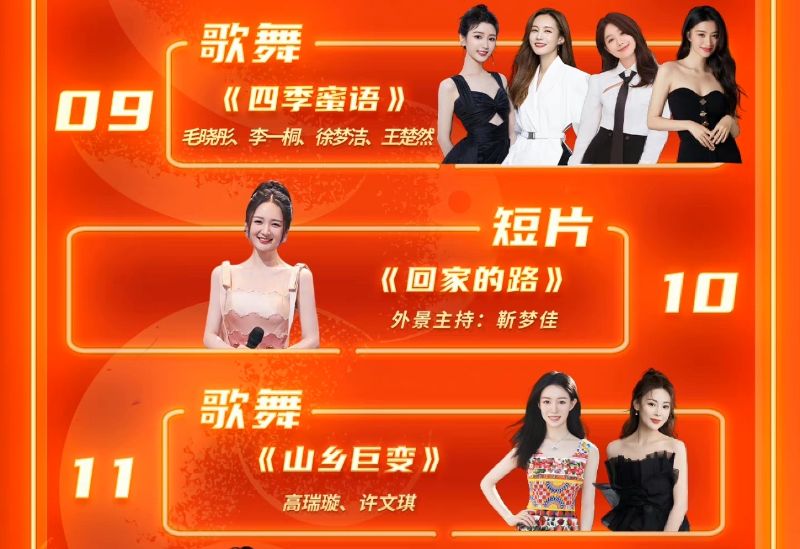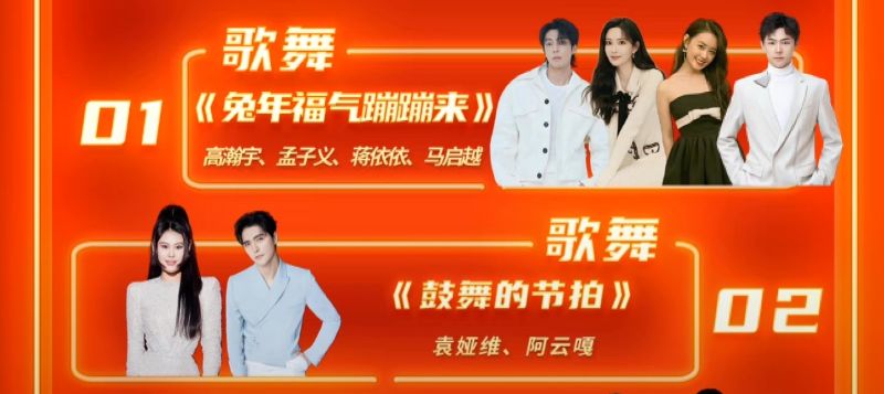 開場節目就有高瀚宇、孟子義、蔣依依、馬啟越《兔年夫妻蹦蹦來》+袁婭維、阿雲嘎《鼓舞的節拍》👇