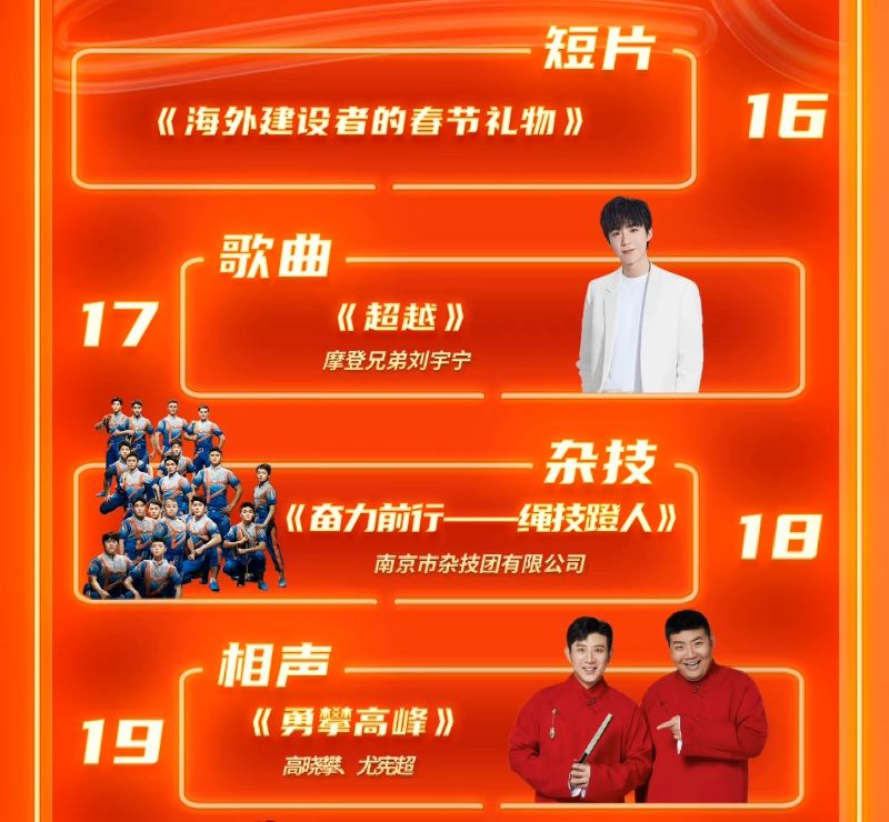 而我們的劉宇寧《超越》是第17個節目,接著就是雜技和相聲表演👇