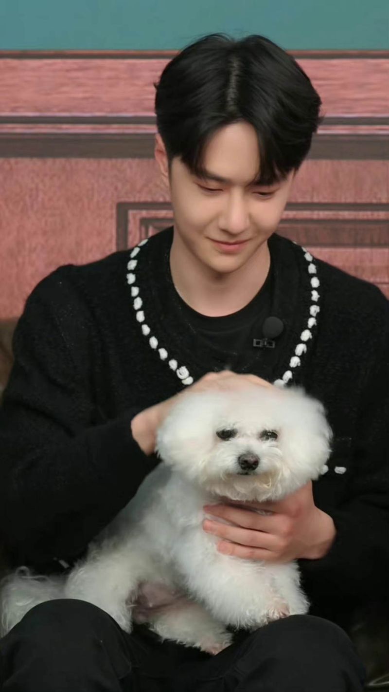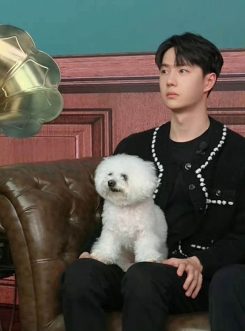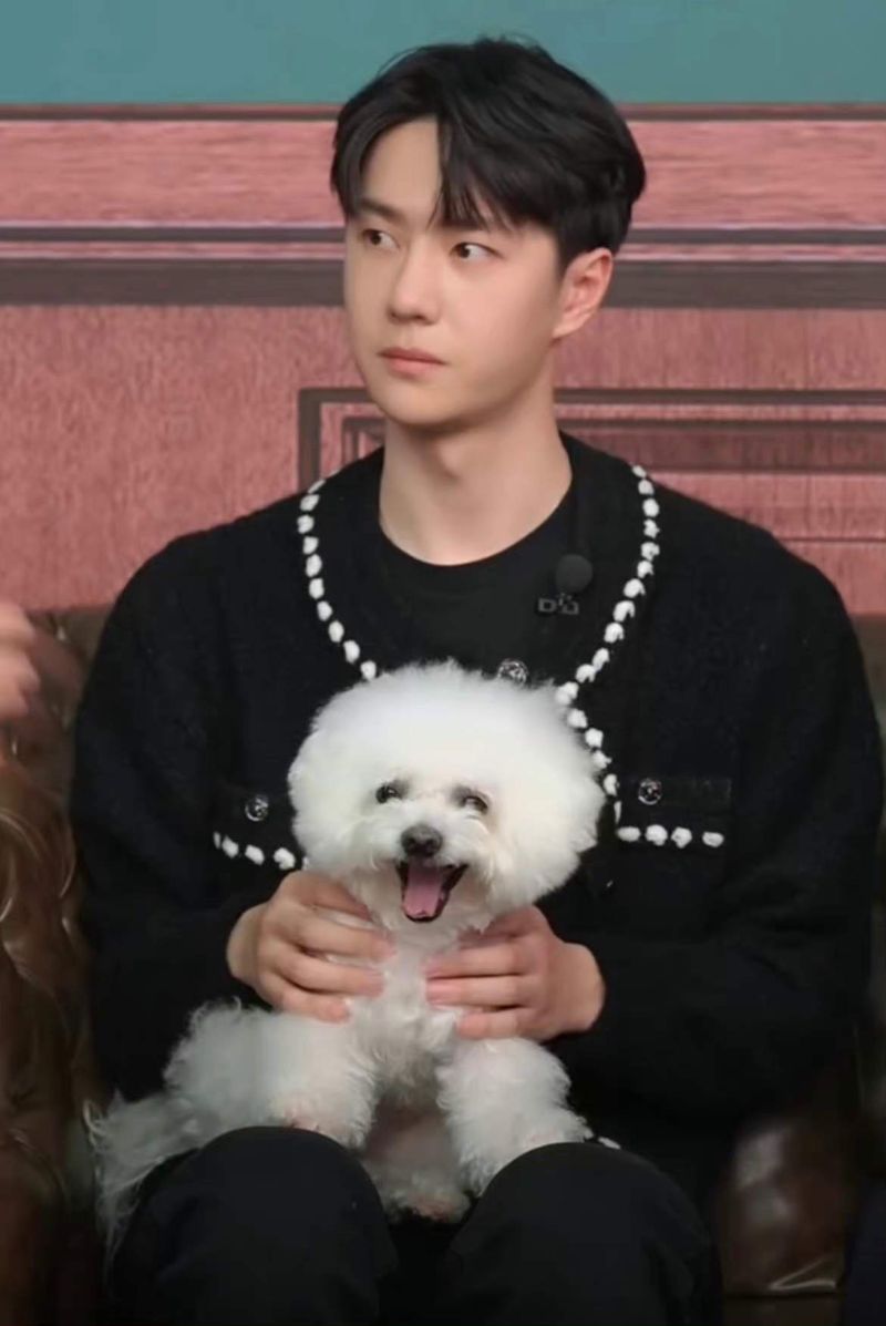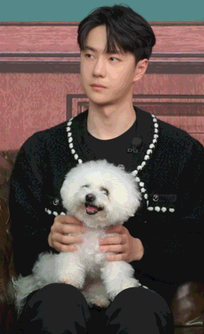 王一博:「(趕緊抱緊)不不不我很喜歡狗,很喜歡。(摸狗頭)」