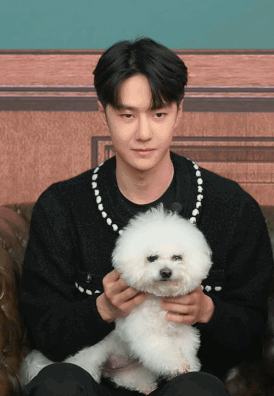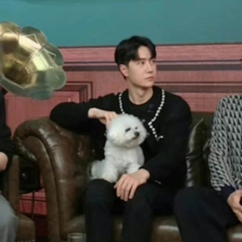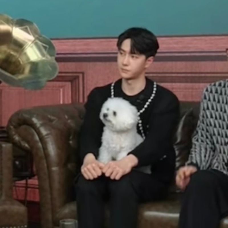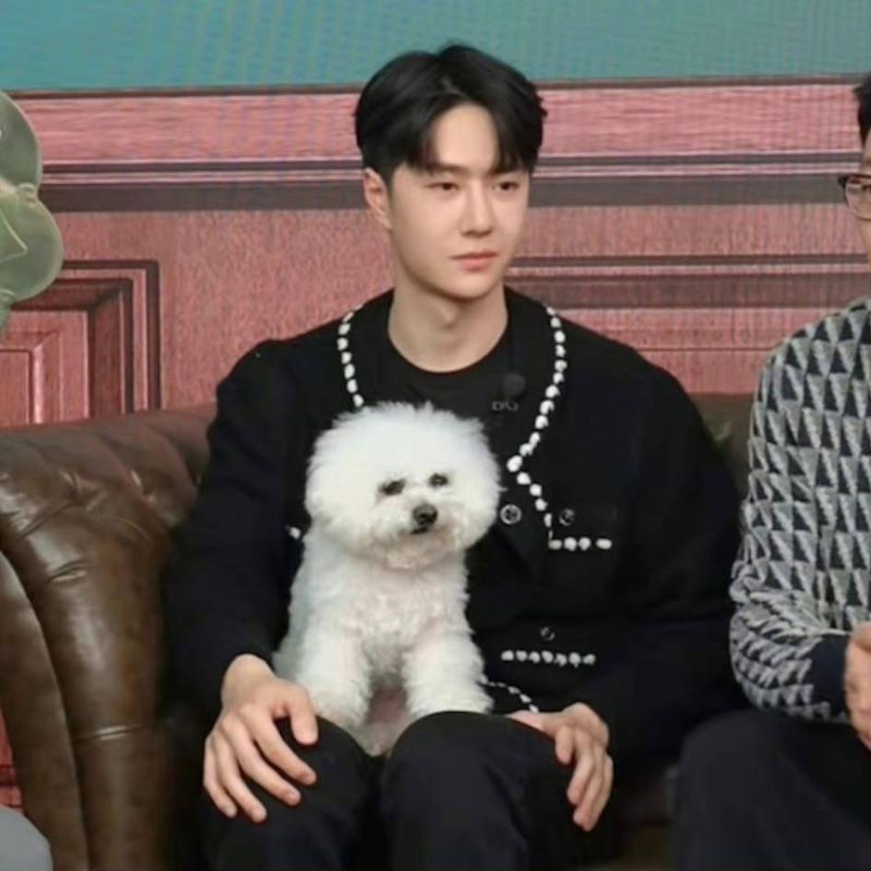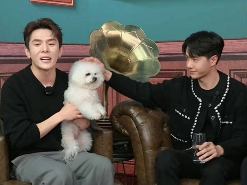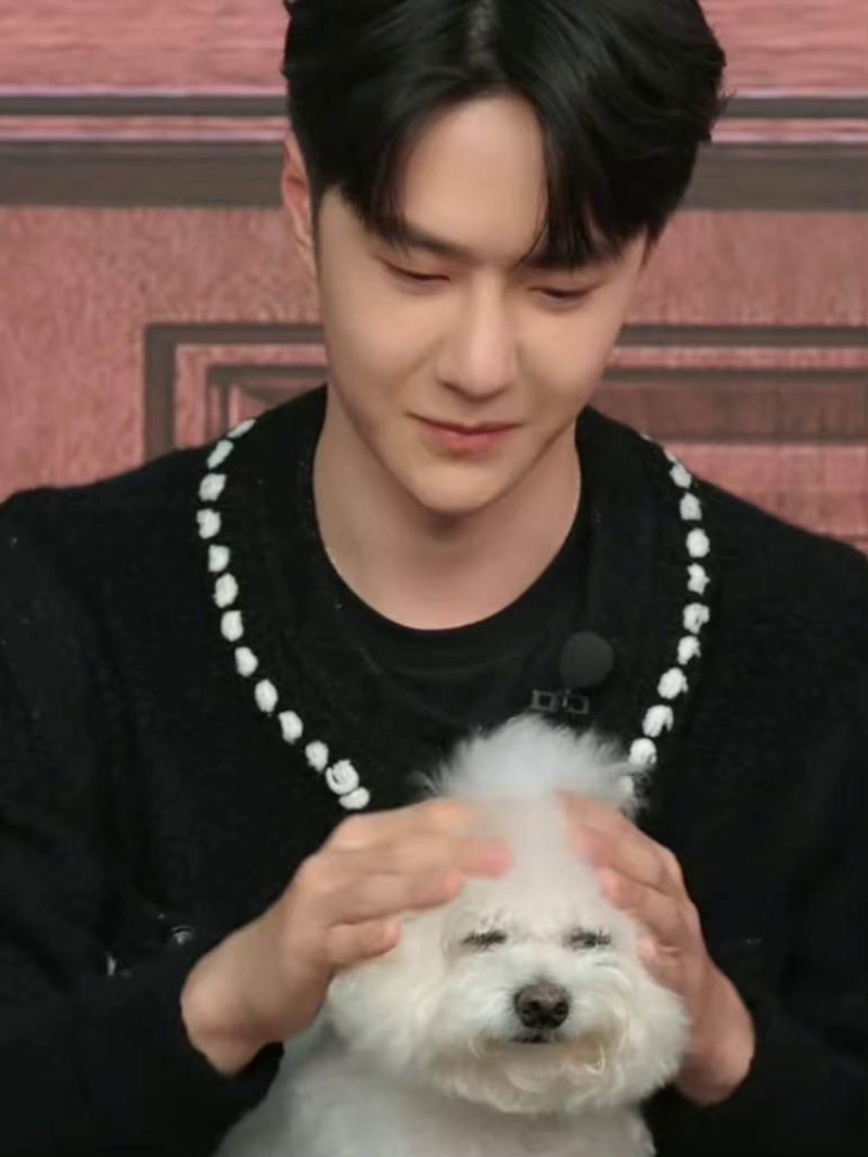 王一博:「(趕緊抱緊)不不不我很喜歡狗,很喜歡。(摸狗頭)」