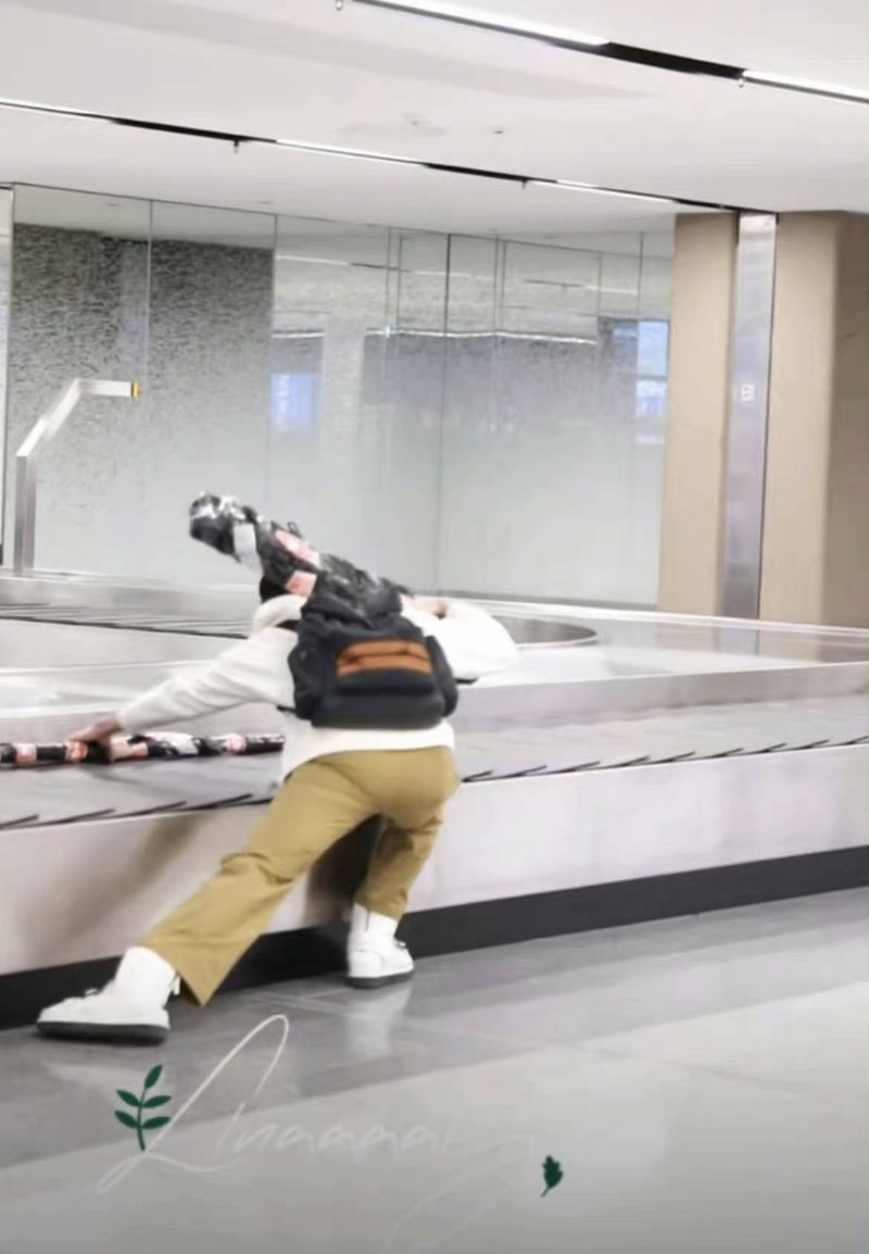 雖然看起來是酷帥帥哥,實際上在機場上演狂奔取行李的可愛行為👇