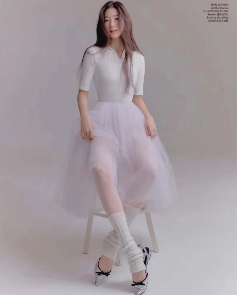 張予曦雖然是濃顏系,但穿起芭蕾風,也是能將「又純又欲」carry得很好,而且她的很多同款單品都比較“接地氣”,可以直接入手👇