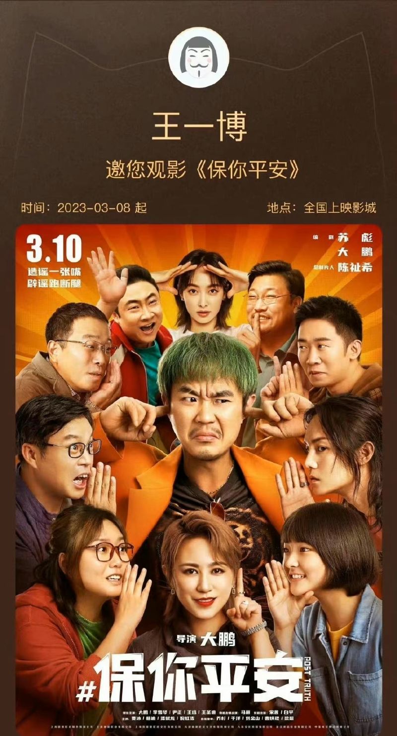 而身為王一博合作過的演員、導演的大鵬有新電影《保你平安》上映,王一博也包場支持!