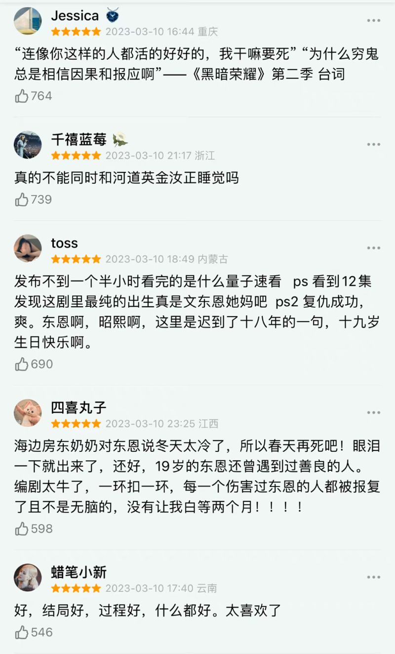 嗚哇~這還真的是史上最快開分了啊!是噠,宋慧喬、李到晛、林智妍等演員主演的《黑暗榮耀》,終於在3月10日播出萬眾期待的第二季,一口氣炫8集,為了不被劇透,不少劇迷直接開啟徹夜追劇模式!