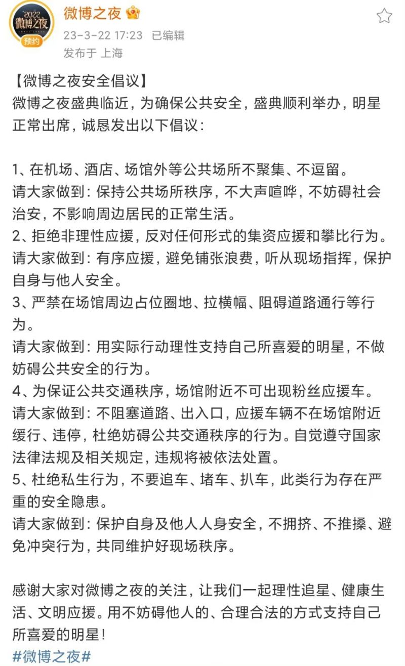 僅是搶票就已經腥風血雨,成為上半年最大的飯圈活動,微博之夜也速速發出安全倡議,確保活動順利進行👇