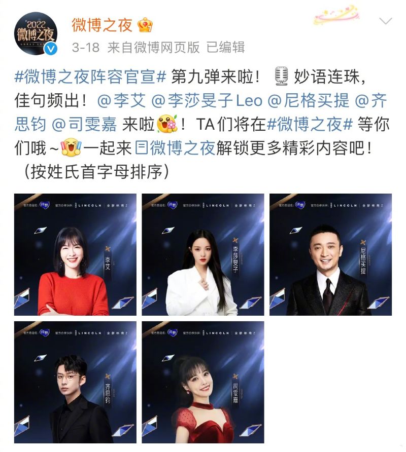媽啊啊啊啊啊啊啊啊~不愧是我們微博爸爸,真的是夠有面子,請到了這麼多的頂流出席啊!沒錯,說的就是整個內娛飯圈都在關注的《2022微博之夜》,即將在25號於上海主辦,從官宣活動當天開始,每一天官宣一批藝人,讓人看得目不暇給,可以說…頂流們都去了!!!!隨著最後一批陣容官宣,這就來看看,到底時隔兩年主辦的《微博之夜》,陣容究竟有多豪華!部分名單看起👇
