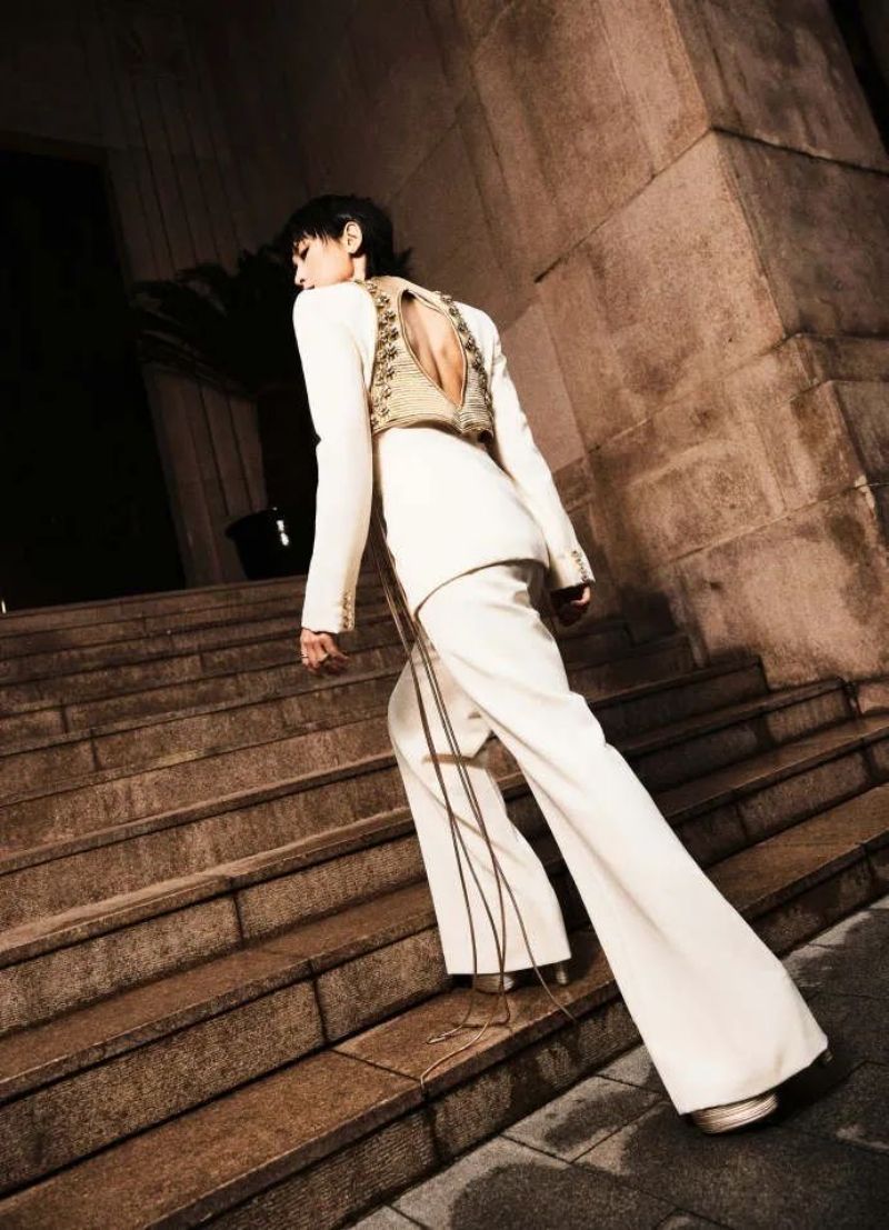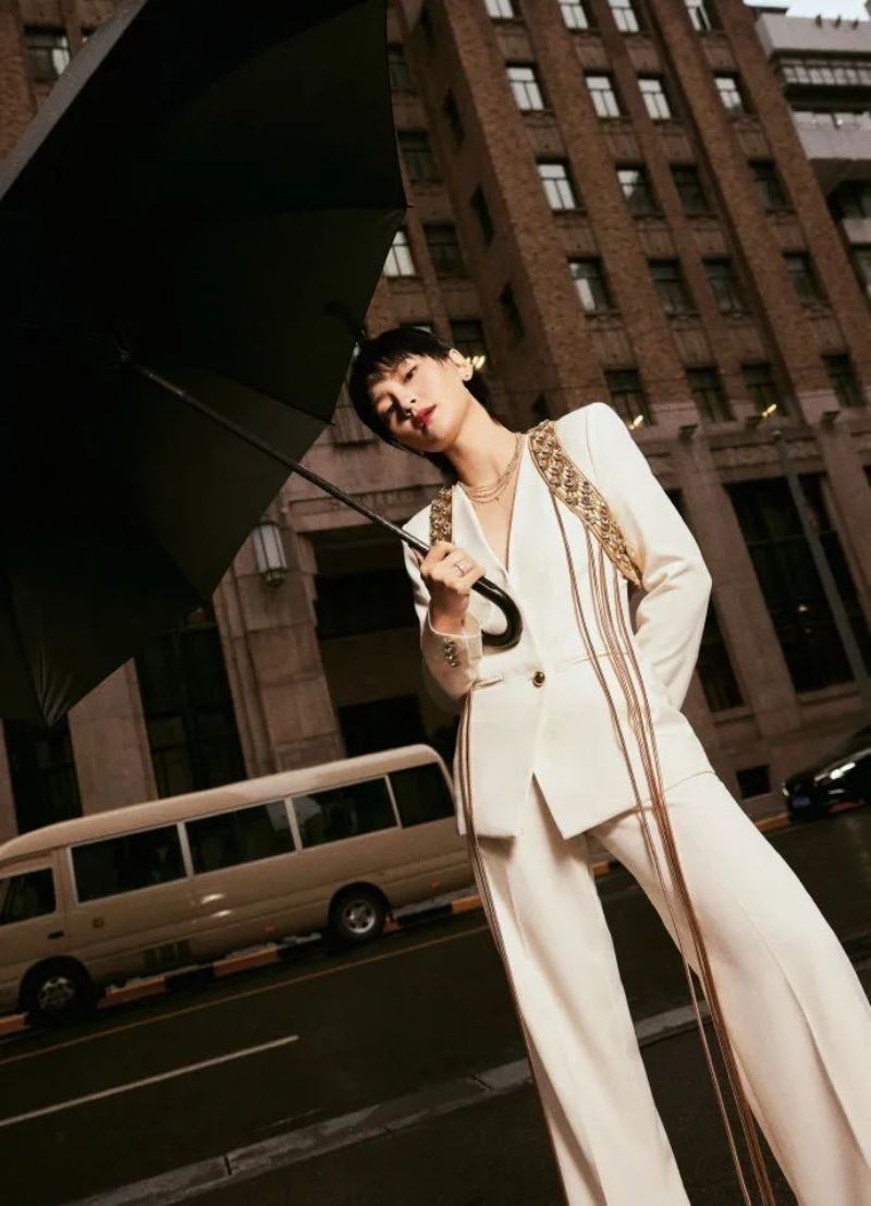 白色西裝套裝,不光是氣場兩米八,而且看上去腿長真的有兩米八,顯得比例非常好。