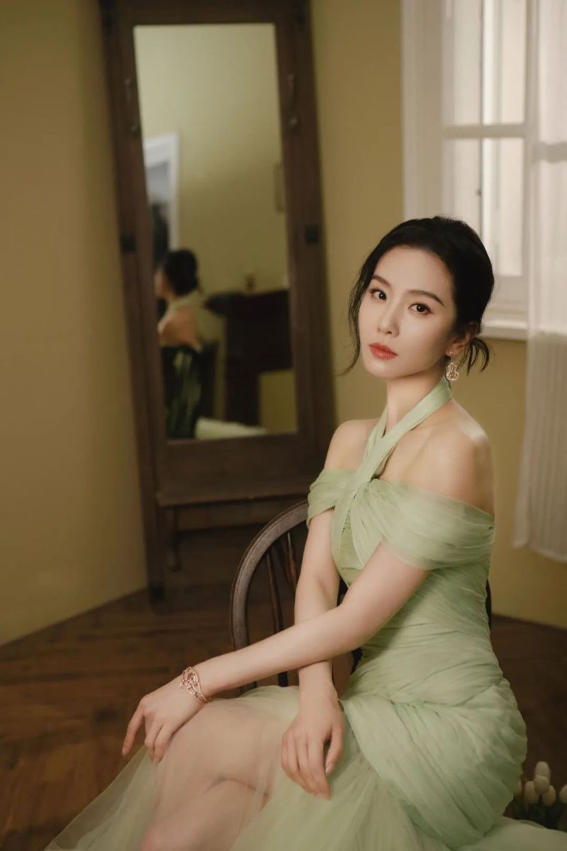 以後《新華字典》裏“人淡如菊”這個成語,建議配圖就放劉詩詩微博之夜的照片。她真的太適合這種清冷感的禮服了。工作室發的照片微微有些偏色,其實這條來自Giambattista Valli 2023春夏高級定制的裙子本身是很正的薄荷綠,裙擺前側的露腿設計是最大的亮點,比一般的拖地紗裙更加摩登靈動。