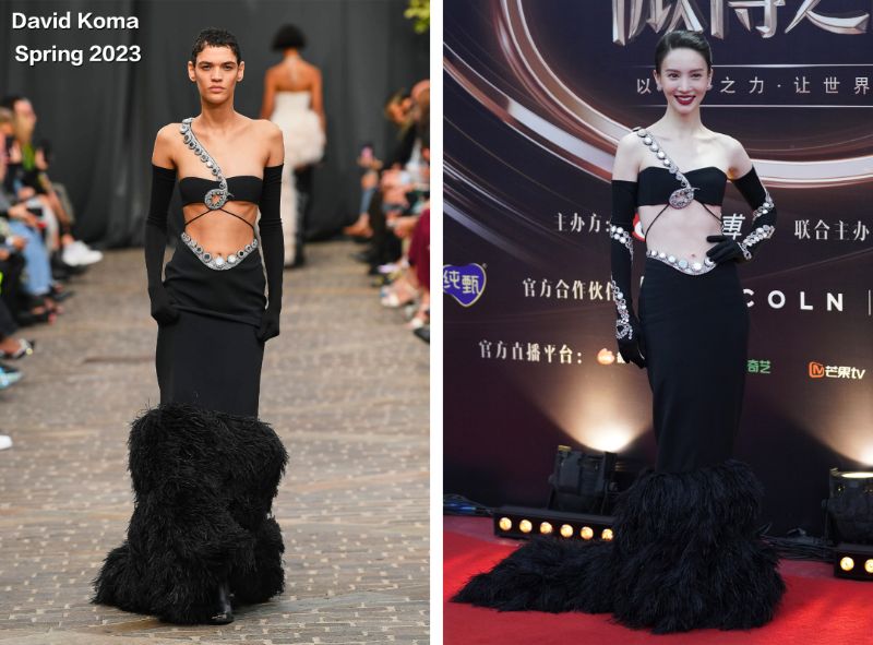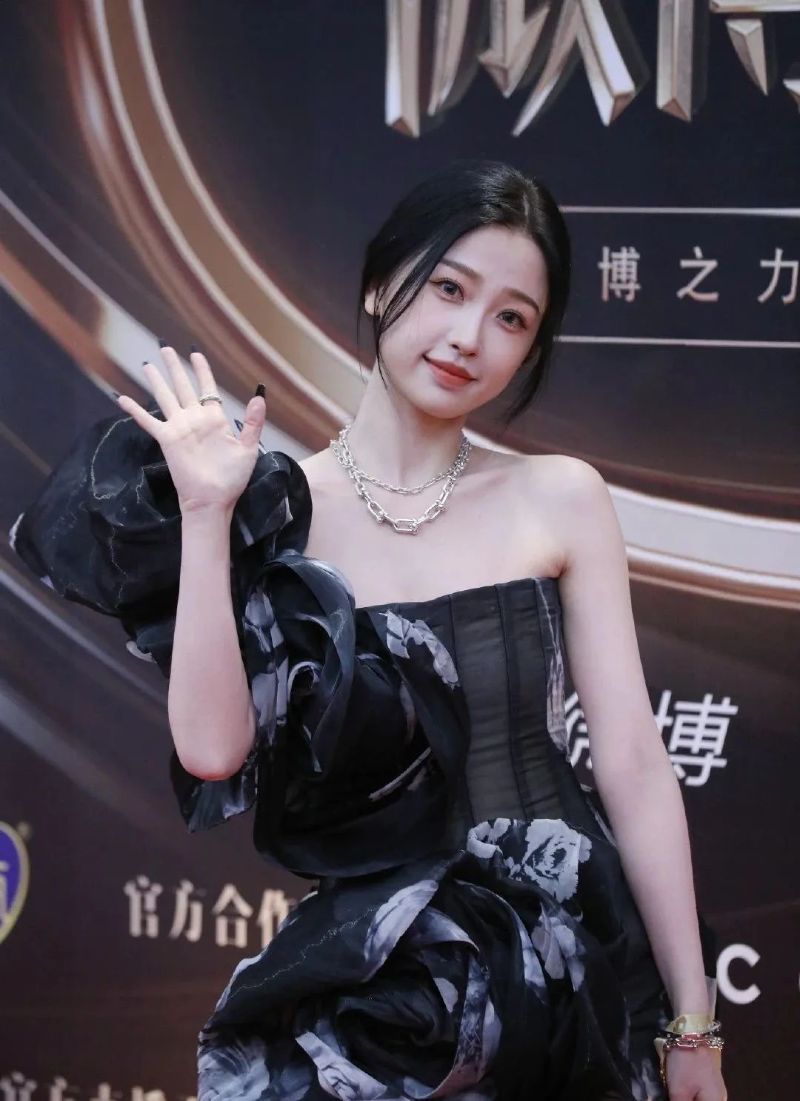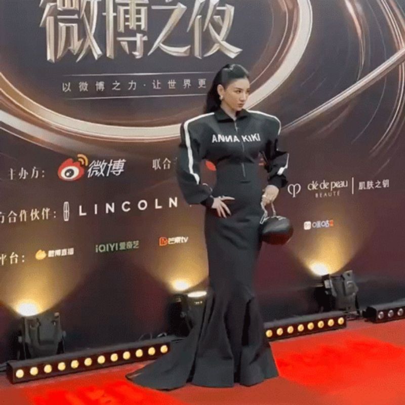 難怪她走紅毯前說自己只敢吃一勺飯呢,這條裙子確實還是很考驗身形的。