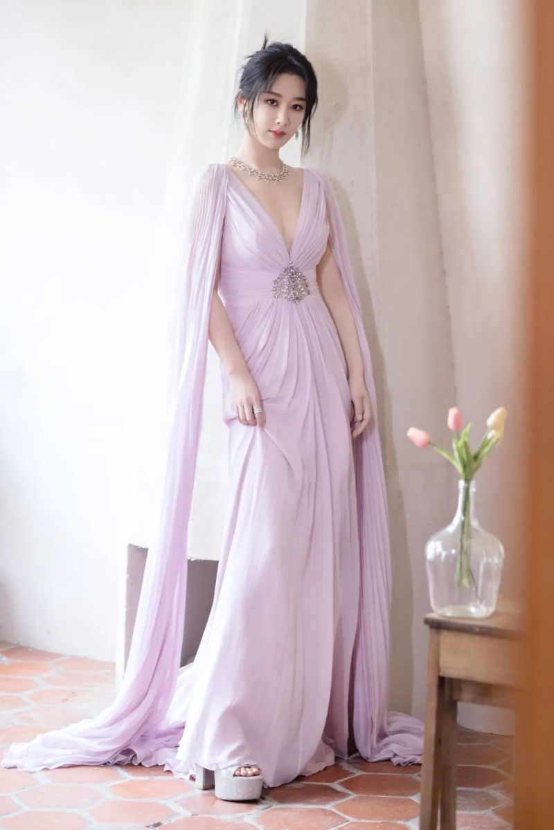 別的女明星都穿成公主、女王,而楊紫不落俗套,把自己打扮成了新娘,確切地說,是婚禮上穿著第二套敬酒禮服的新娘。