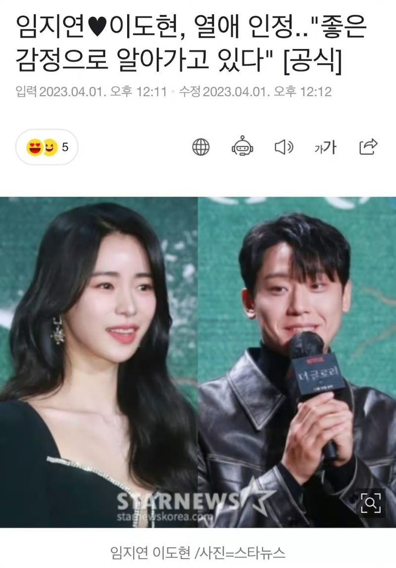 D社表示,兩人是在《黑暗榮耀》結束後才關係密切,而為兩人愛情牽線的契機是電視劇研討會。據悉,兩人在去年夏天的演員MT裏開始産生好感。而兩人的關係,在演員間也是公開的秘密。某電視劇相關人士表示:「兩人沒有秀恩愛,但會用兩人獨有的情侶物件偷偷制造氛圍。」