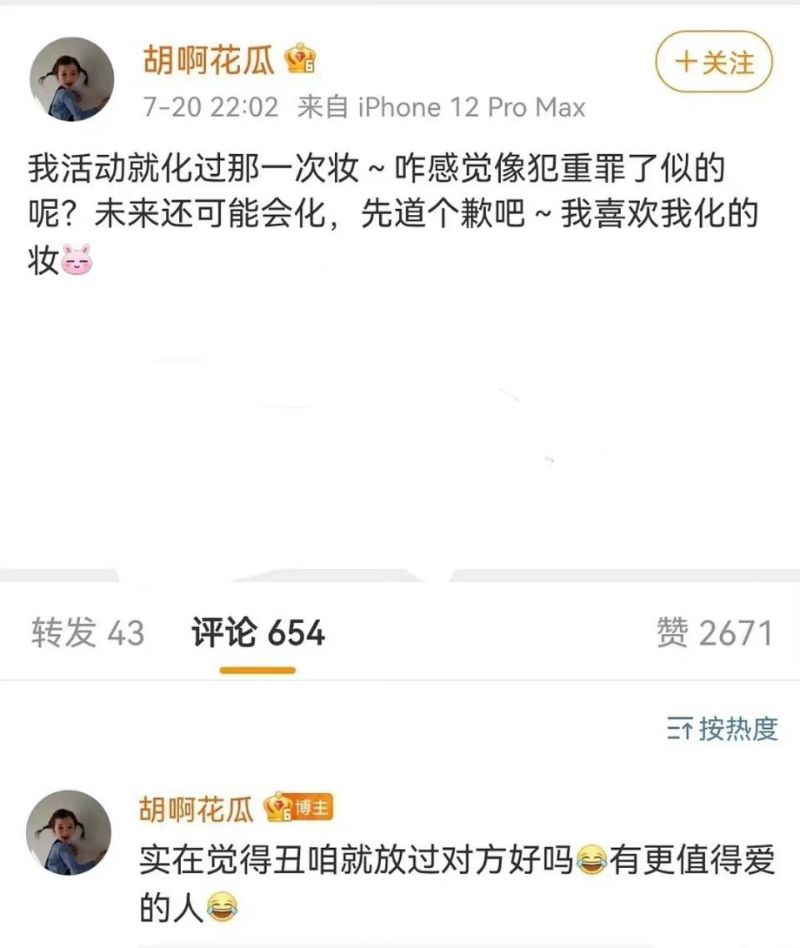 對於粉絲提的妝容,直接回應:「你來演好不好,少說話多幹活好麼?」隨後再補充:「我臉大謝謝」,是真的很直接的程度了👇