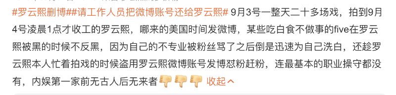但可愛的是,這則微博不久後就被刪除,而粉絲針對當天的拍攝行程表, 力證這是工作人員登錄發的微博,所以羅雲熙到底懟沒懟過粉絲,成了羅生門👇