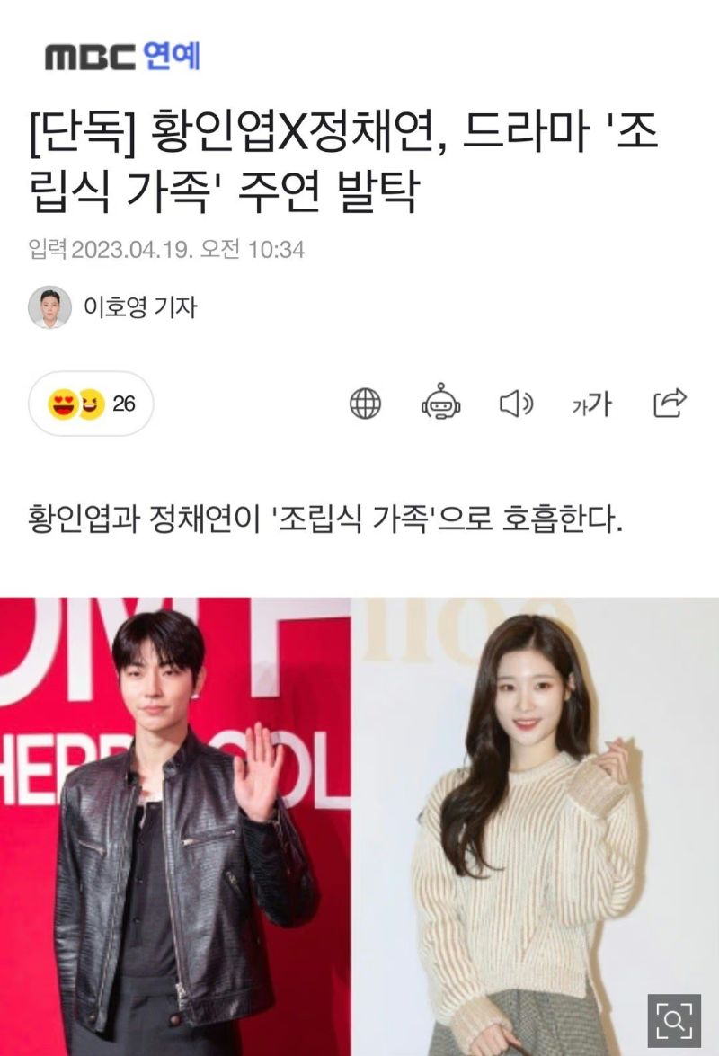 重點來啦~之前就傳過韓國購入了《以家人之名》的版權,將開拍韓劇版本的《以家人之名》,而現在選角終於曝光啦!根據韓媒報導,演員黃寅烨和組合DIA出身的鄭彩娟(正名前譯名鄭采妍),將出演新劇《組裝式家族》。沒錯,韓版將原有劇名改成了《組裝式家族》。