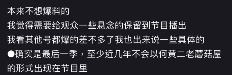 而讓網友比較震驚的是,在官宣定檔之前,就有瓜主爆料,表示這一季將會是最後一季,常駐更只有黃磊和何炅👇