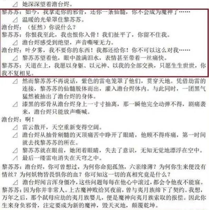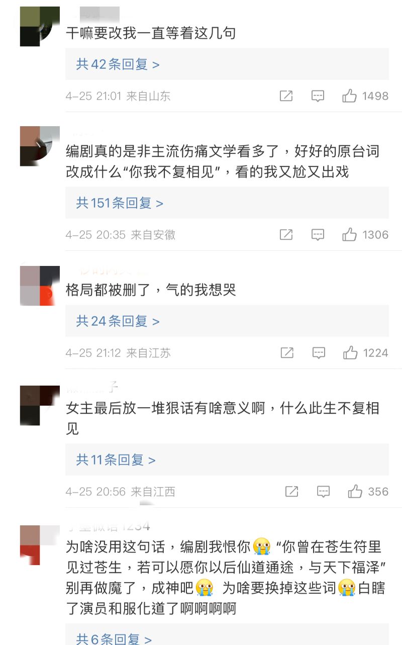 是達,不少劇迷認為原著這段格局很大,不但體現女主心繫蒼生的大愛大義,同時也有對男主的不捨和祝福,所以希望他不但入不了魔還能修仙,予天下福澤,而不是像劇裡違心說狠話,拍成一對怨侶間互相拉扯的私人恩怨。