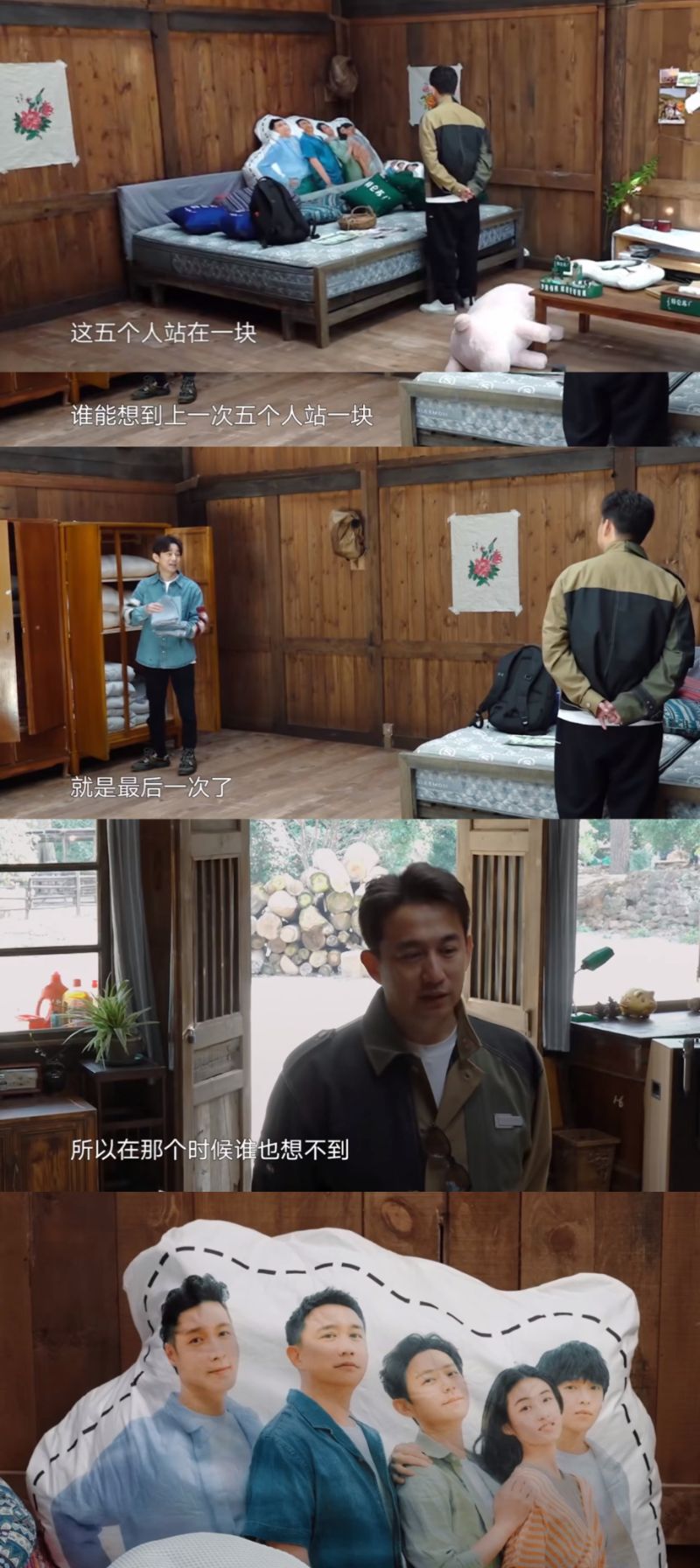 最讓人感慨的,應該還是兩位老師看著蘑菇屋中的五人肖像枕頭,感慨的說沒想到上一次五人這麼站在一起,就是最後一次,那個時候誰也想不到😭