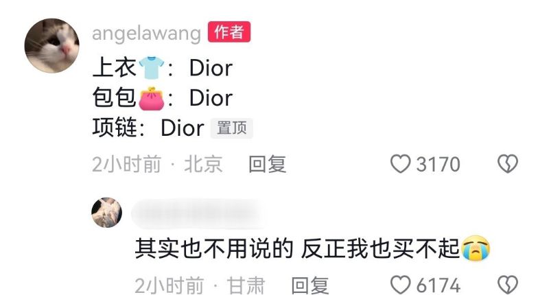 這些其實也就是她的日常,但這次她一反常態,刻意在評論區標注自己上衣、包包、項鏈都是Dior的,結果熱評第一:「其實也不用說的,反正我也買不起」