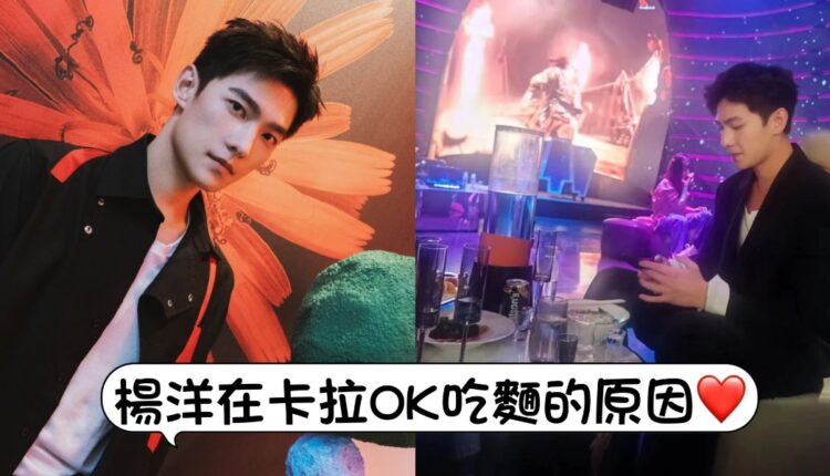 也公開了楊洋在卡拉Ok聚會時,對著一碗麵拍照的照片👇
