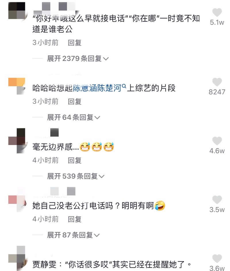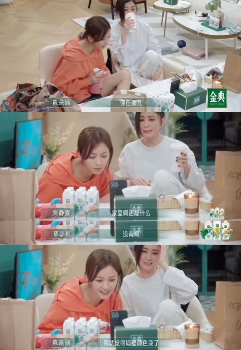 接下來賈靜雯和修杰楷聊了兩句,陳意涵又插話問修杰楷:「你在哪兒?」賈靜雯就表示:「家裡啊還能什麼」,沒想到電話另一端的修杰楷居然承認不是在家裡,於是陳意涵就接話:「我就覺得墻壁顏色變了」