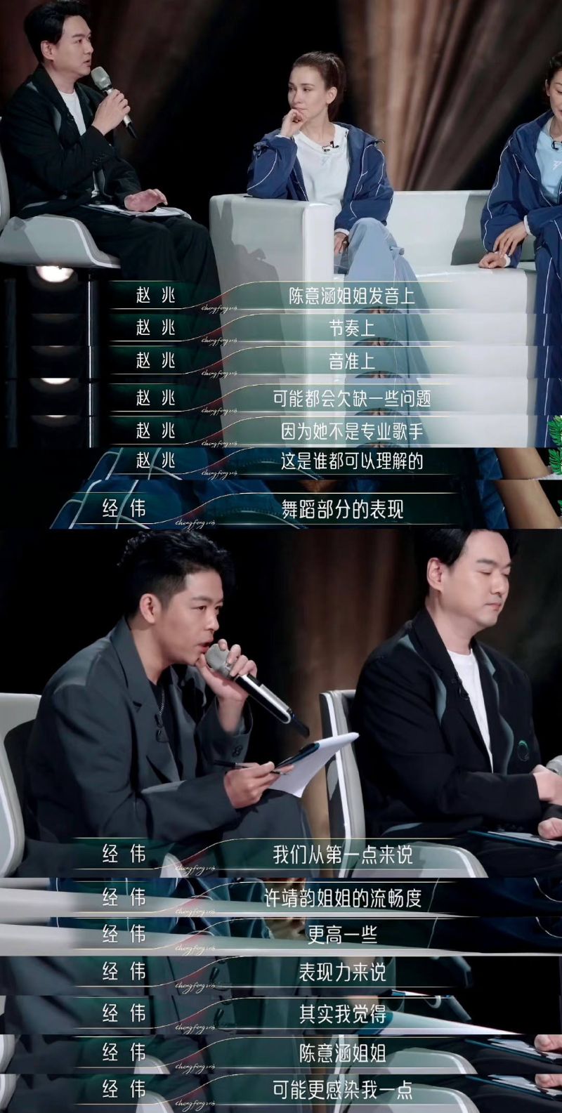 至於給陳意涵的評價,則是因為她不是歌手,演唱上肯定不如許靖韻,但看見了她對這件事的上心,更加感染到大家。