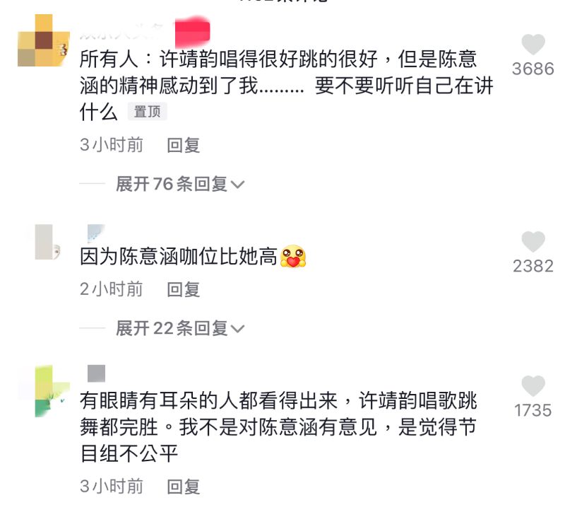 這段節目播出之後,基本上評論一面倒,都認為黑幕太明顯,說的好像許靖韻一點努力也沒有👇