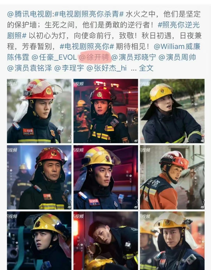 在《照亮你》殺青貼文時,原本艾特了他的名字,但隨後被編輯刪除了。