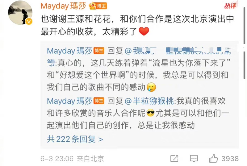 特地在評論區再次提及,重申可以和不同歌手交流的喜悅👇🏻
