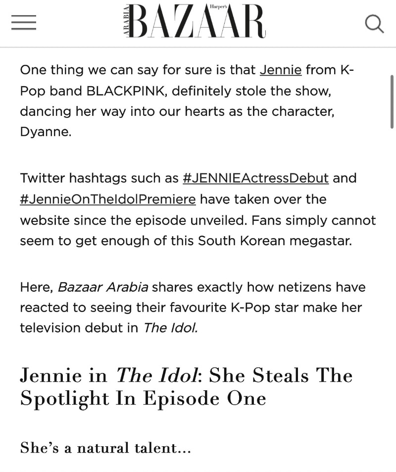雖然但是,美國芭莎卻對Jennie的表現給予了極高的評價👇🏻