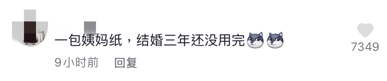 網友神評論:一包姨媽紙(衛生棉)結婚三年還沒用完」👇🏻