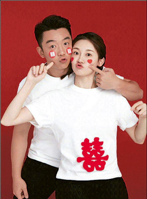 而在領證之前,苗苗就一直被拍到疑似已懷有身孕,兩人官宣照也故意在肚子上貼了「囍」字,暗示雙喜臨門。
