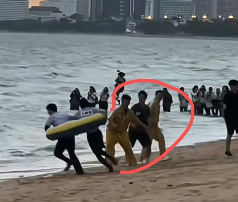 看完了這兩個顯眼包雙雙跳海的路透,不少網友在線可憐….我們的沙溢!明明是一起拍攝海邊畢業大片👇