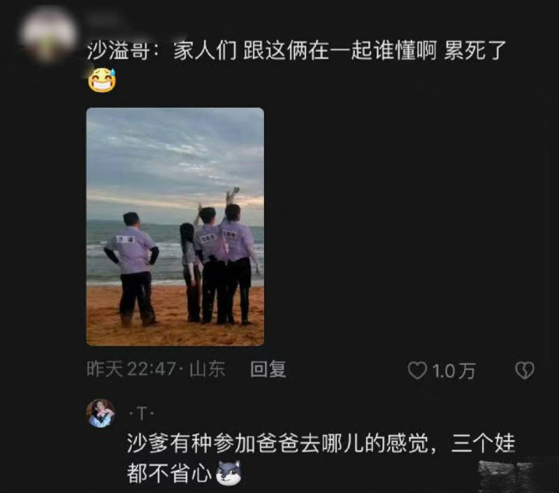 畢竟帶著王鶴棣、范丞丞、蔡徐坤這些熊孩子,少點體力都不行啊!難怪網友都在調侃,人家是去拍攝《奔跑吧》,我們沙子爹是去參加了《爸爸去哪兒》啊!