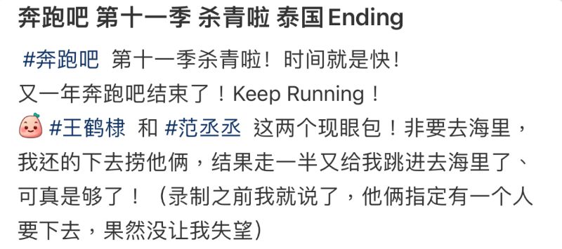 就連《奔跑吧》導演也忍不住發文“控訴”,表示在錄製前就預判了,這兩人肯定有一人會跳下去,果然…