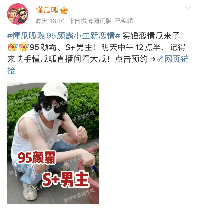 果然,「95顏霸」這個稱號,說的就是宋威龍啊!是噠,狗仔「懂瓜呱」13號預告,將爆料「95顏霸」的戀情瓜,還說絕對有實錘!