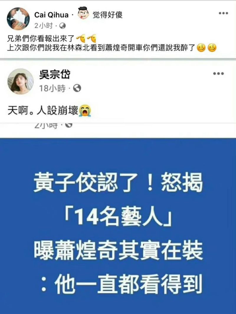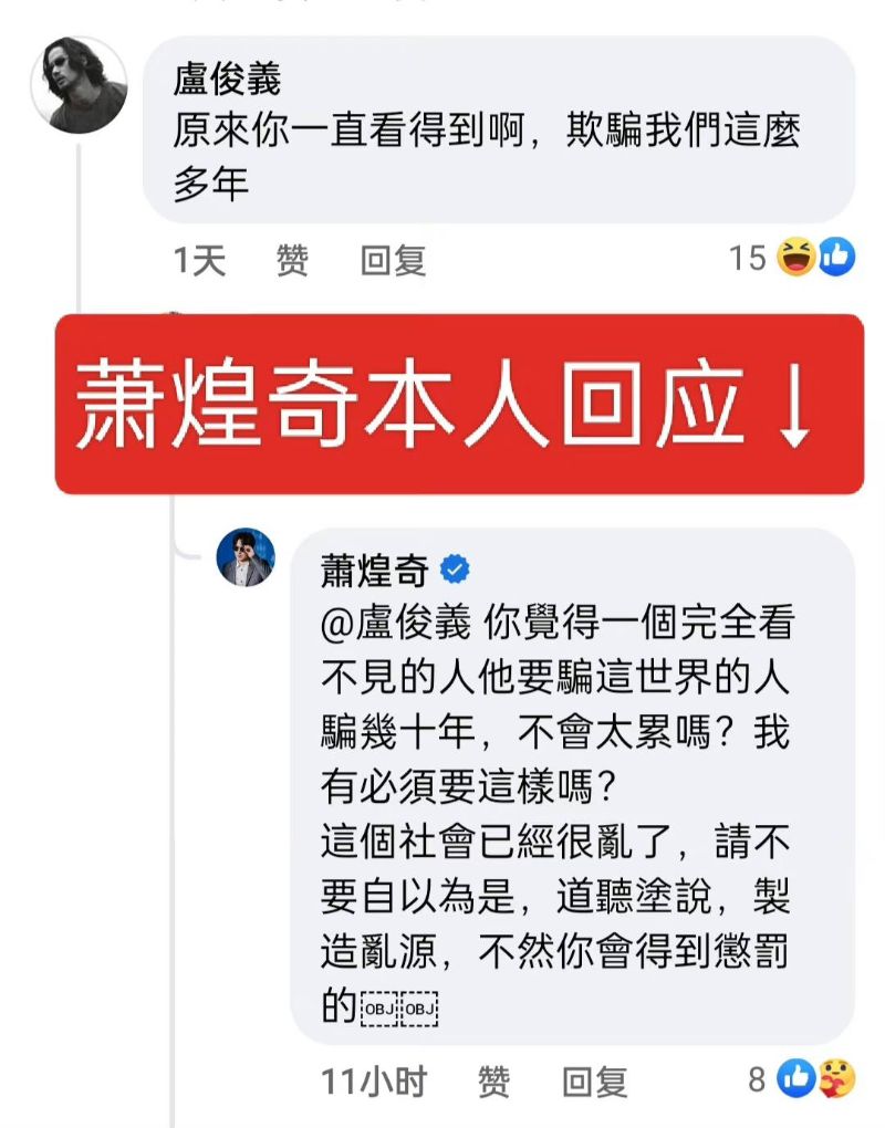 雖然本尊第一時間在貼文底下留言闢謠,但有關「蕭煌奇裝盲」的新聞,還是一直被謠傳👇