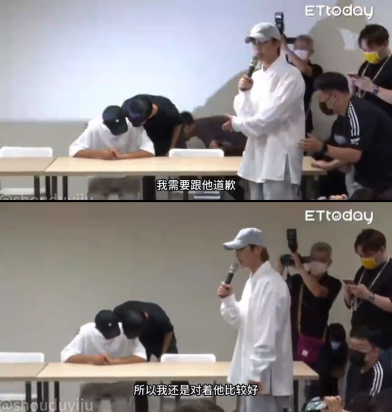 在記者要求下,炎亞綸拿起麥克風,但表示只想面對耀:「我需要跟他道歉,所以我還是對著他比較好」
