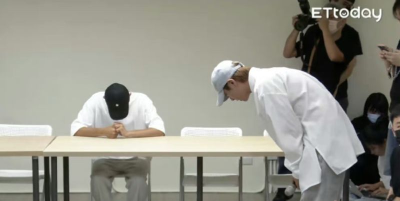 結果沒想到記者會才開始,炎亞綸突然現身記者會,一上來就是90度鞠躬!