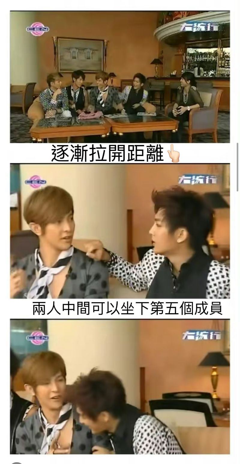 此時,再來看看汪東城僵硬的身體,炎亞綸豪放的坐姿,汪東城尷尬的表情,根本不敢往後靠👇