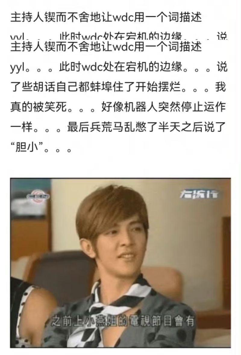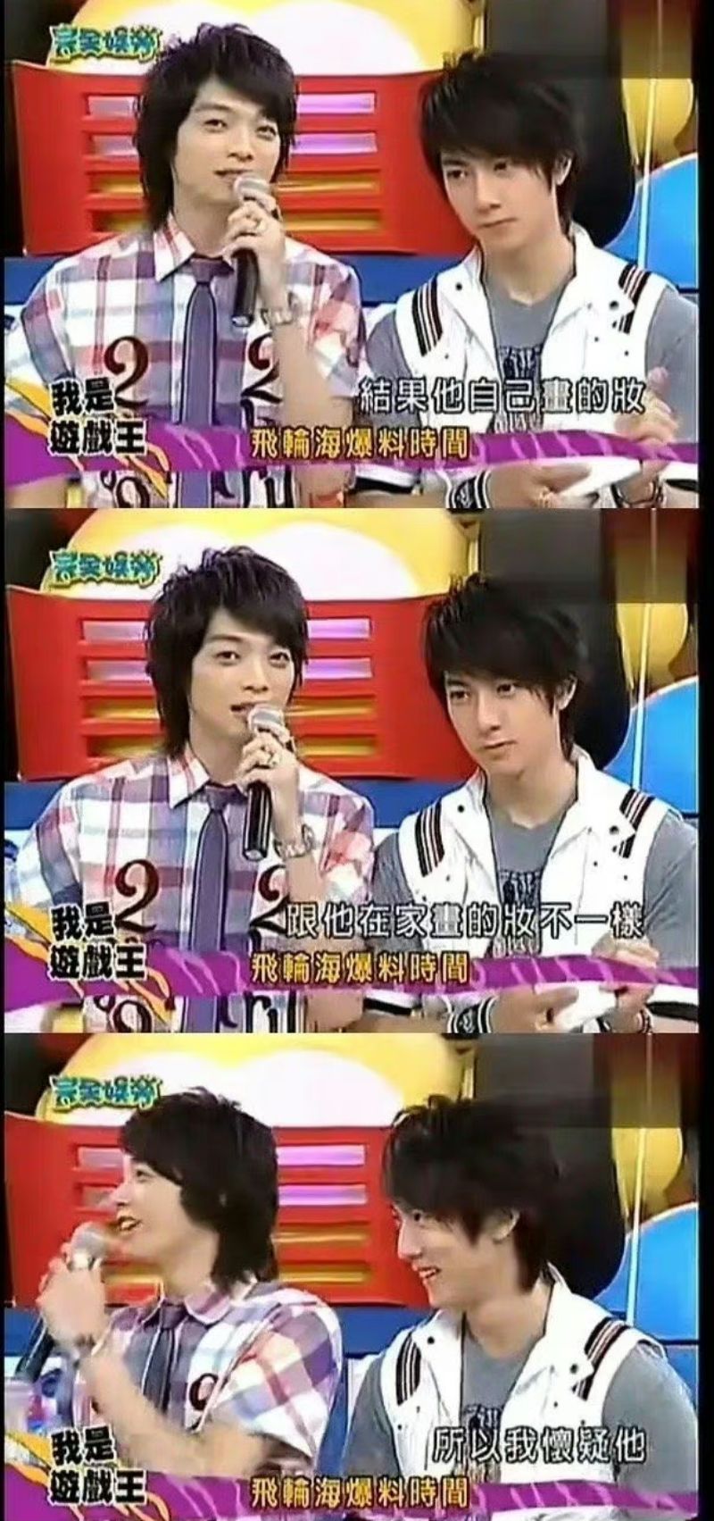又是同一場訪問裡,主持人讓汪東城用一個詞形容炎亞綸,結果大東一整個頭腦空白,臉色茫然,立刻向吳尊和辰亦儒求助,還問吳尊:「為什麼笑得這麼尷尬?」但這兩人不但不幫忙,還倒油說:「我們在比力氣,我在推他,他也推我」