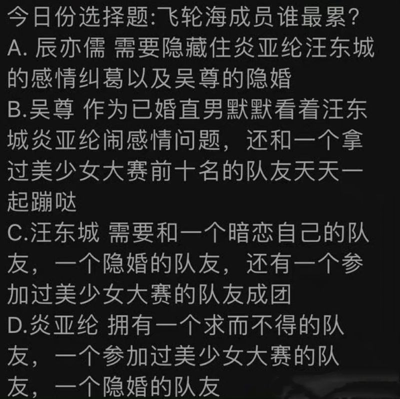 最後,送上一道全網都在思考的題目:「飛輪海成員誰最累?」👇