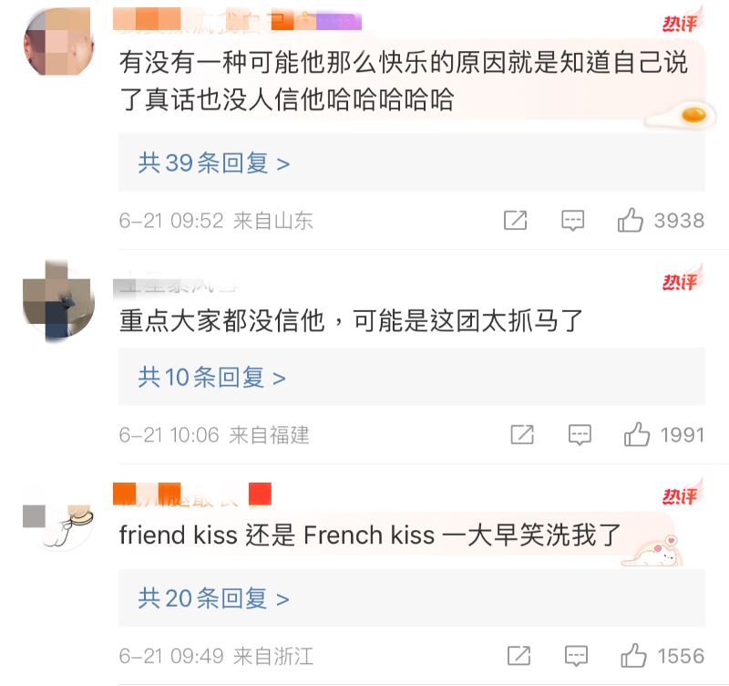 而吃瓜第一線的辰亦儒就問了一句:「男生友好會親嘴嗎?我不曉得你們怎麼親得下去的?」結果汪東城立刻公關:「friend kiss」,沒想到被瓜主反懟:「friend kiss還是French Kiss(法式熱吻)」