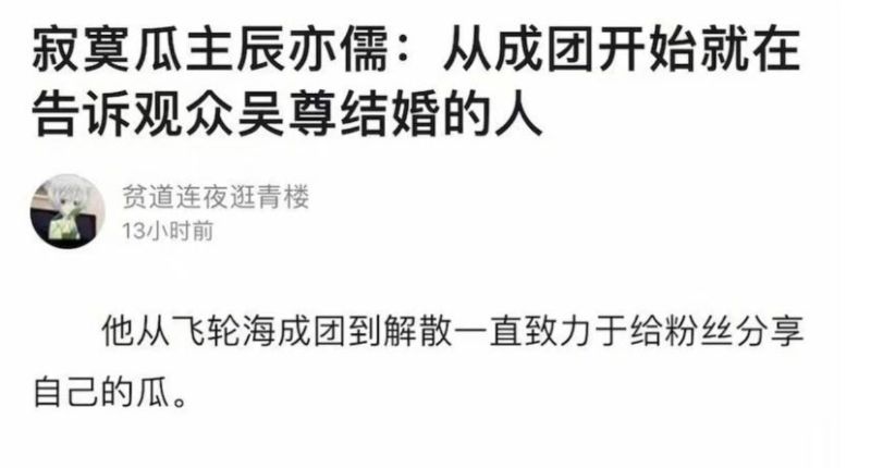 先來看有關成員之一,也就是吳尊的「隱婚」瓜!沒錯,吳尊在出道前一年就已經隱婚,一直到2013年才發文自曝!問題是,我們辰亦儒在成團開始,就一直在告訴觀眾,吳尊已經結婚了!